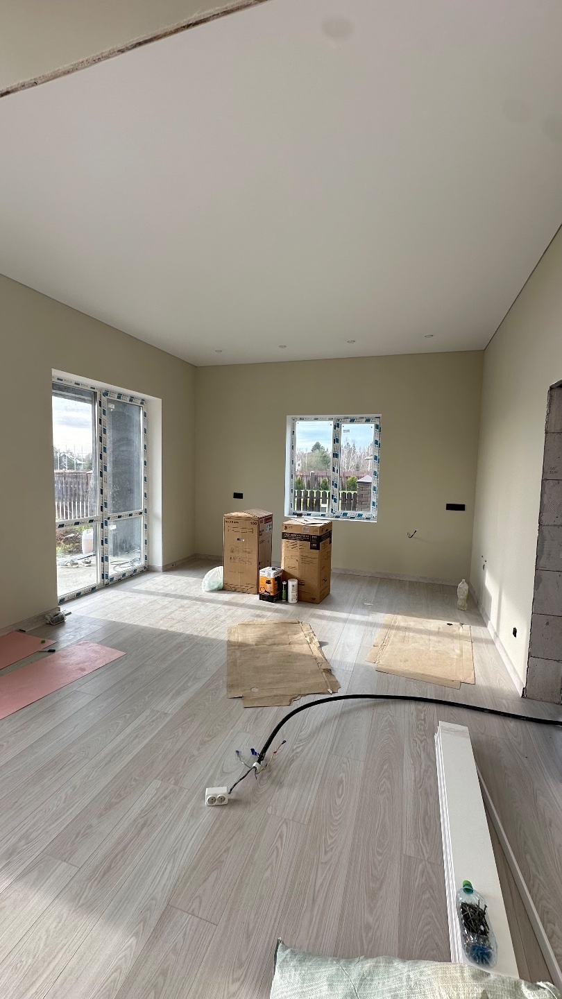 Дом из газобетона, с отделкой. Фундамент УШП. Дом со 2 светом. Сейчас идут отделочные работы. Будет готов через месяц.