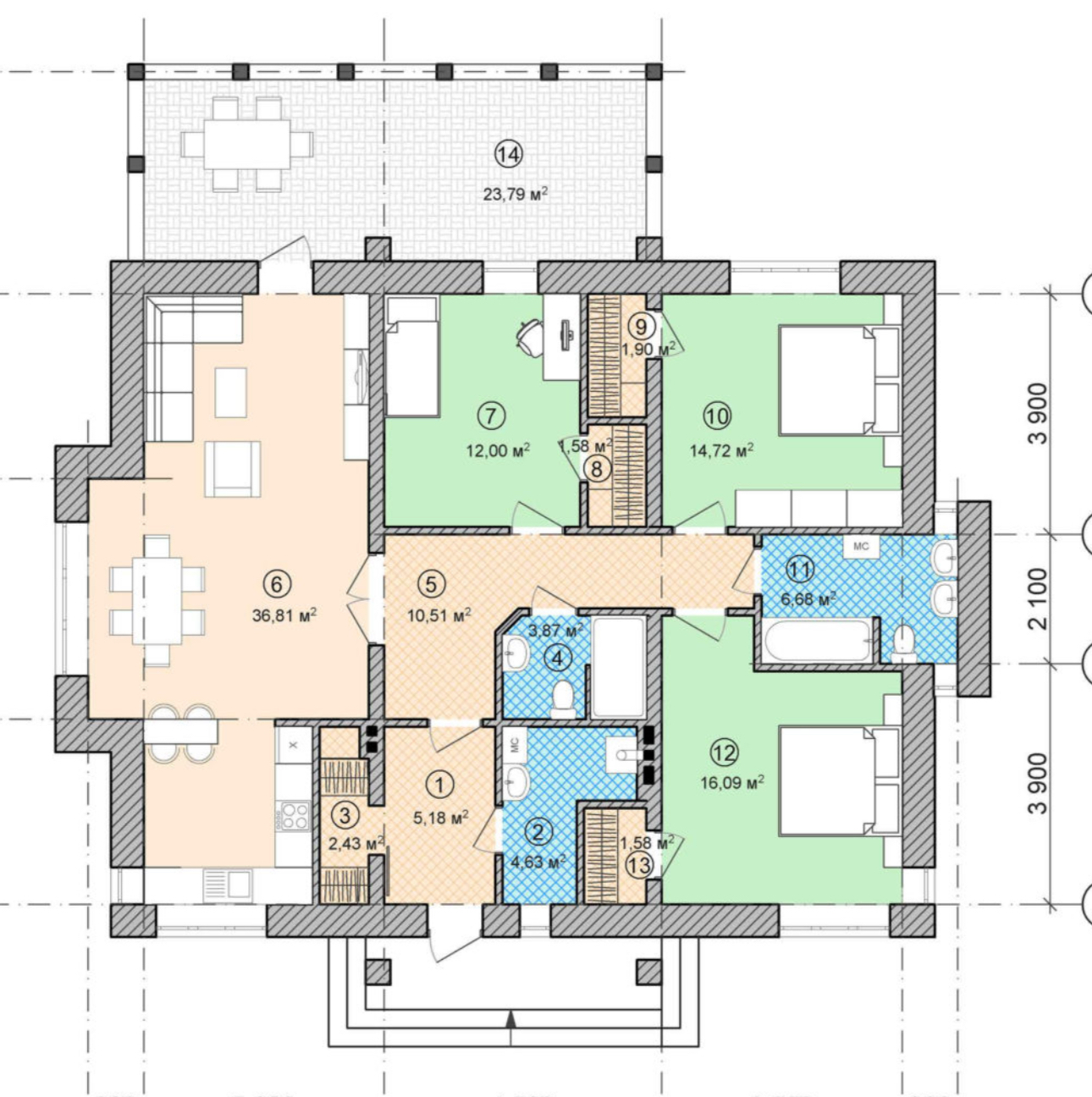· Стены и перекрытия: Коробка дома из газобетона (144 кв.м.).