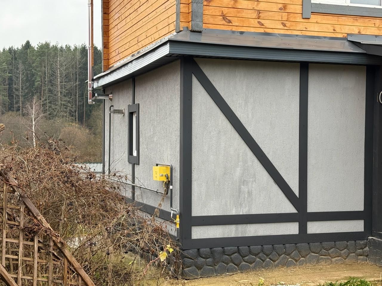 Материал стен: пеноблок+профилированный брус