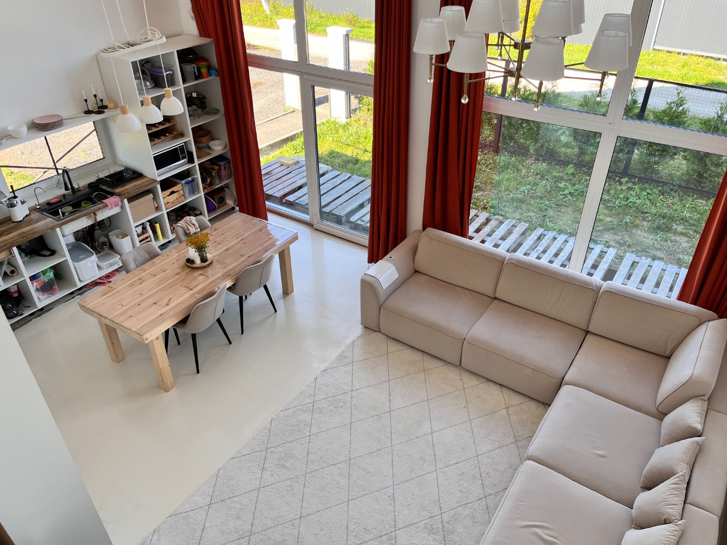 Высокий потолок 6.2 метра.
