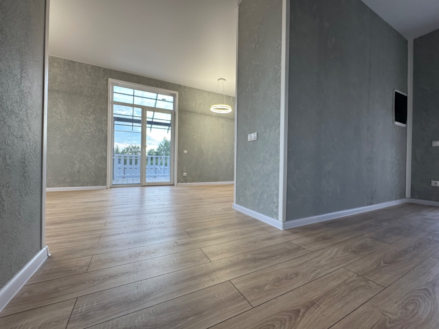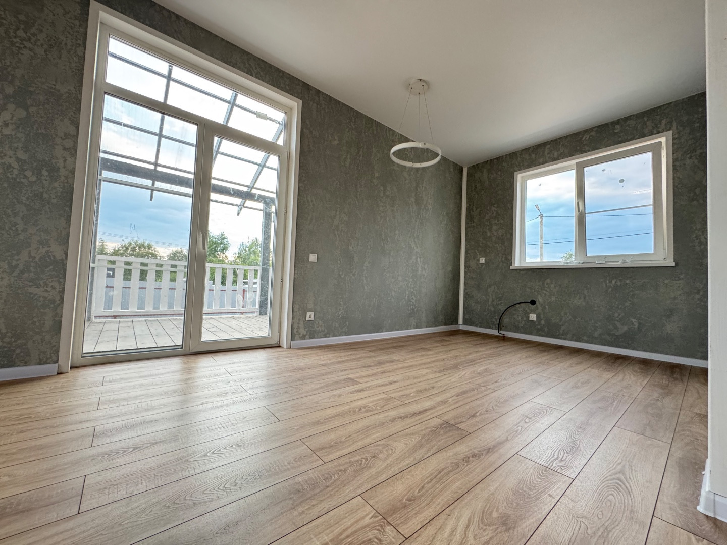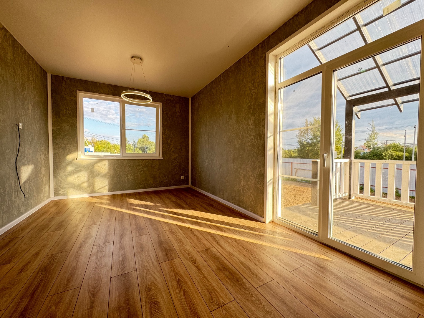 •Просторная кухня -гостиная, место для торжественных встреч. Гости, друзья, родственники все будут в восторге. Панорамные окна в пол с выходом на просторную террасу , на внутреннюю сторону участка. В летнее время можно наслаждаться завтраком и ужином на свежем воздухе.